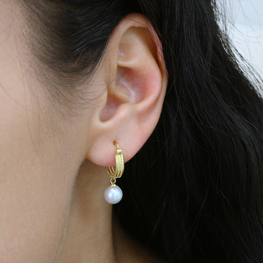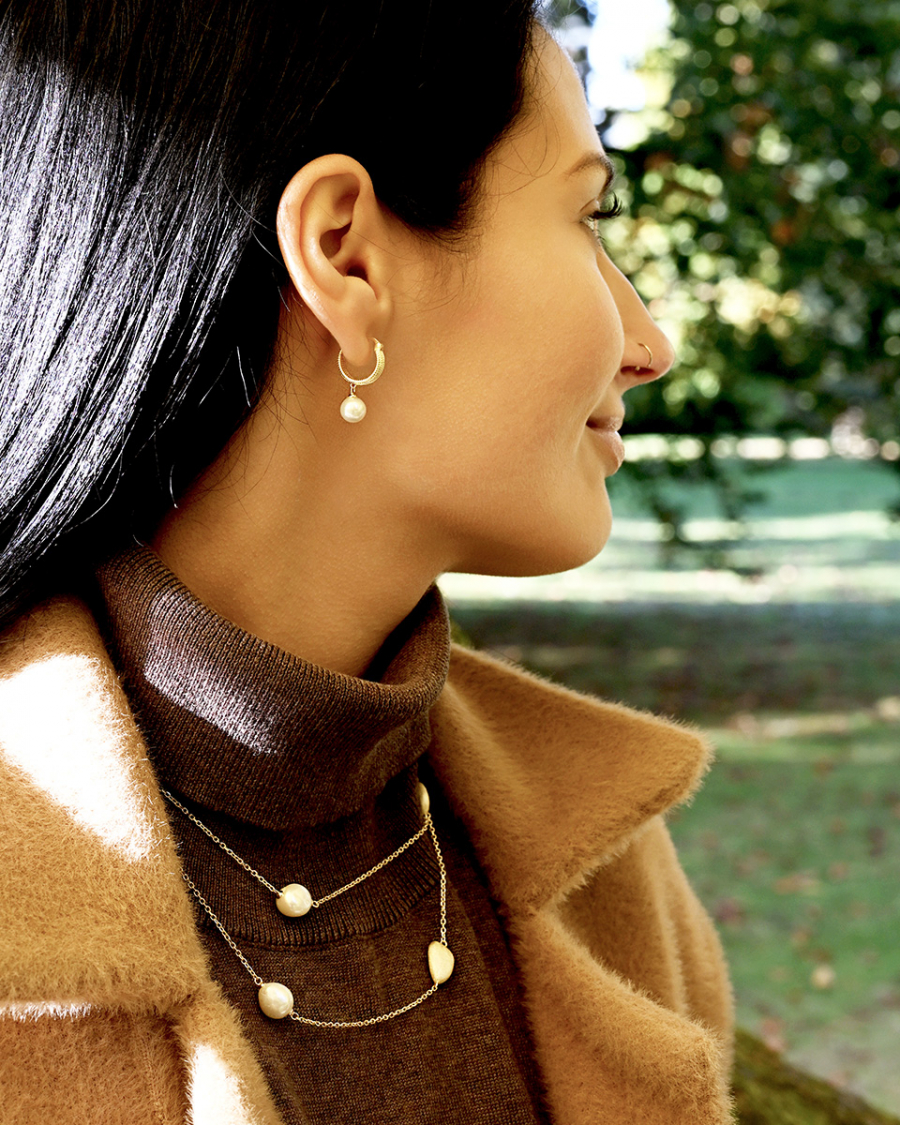 Pozlátené náušnice kruhy so zavesenou riečnou perlou 21127.1