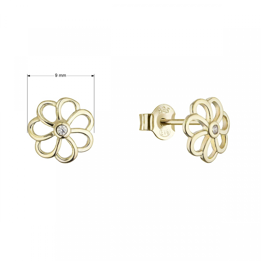 Náušnice v tvare kvietkov sú vyrobené z pozláteného striebra rýdzosti 925/1000. V srdci každého kvetu sa potom trblieta iskrivý zirkón, ktorý ako kvapka rosy chytá a odráža svetlo, a dodáva tak šperku nádych okúzľujúceho luxusu.