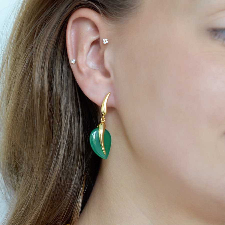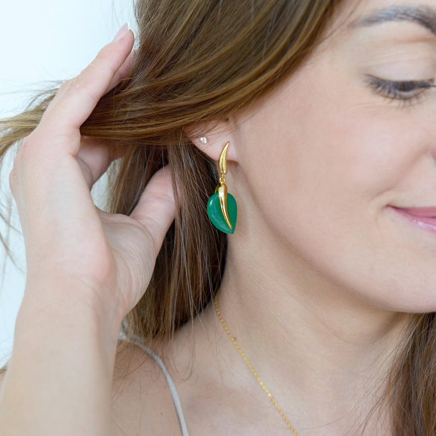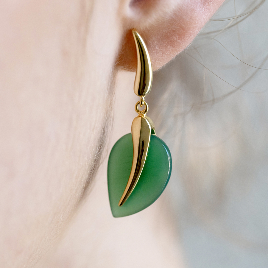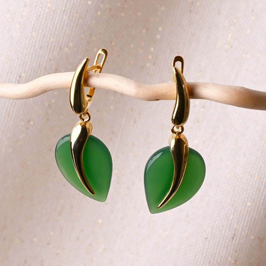 Pozlátené náušnice lístky so zeleným achátom 11744.3