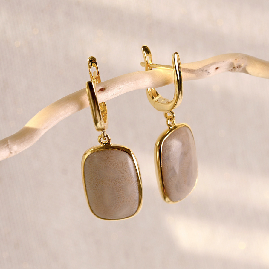 Pozlátené náušnice s fosílnym korálom 11741.3