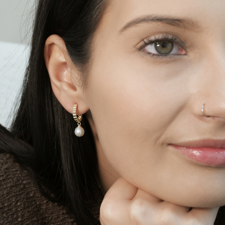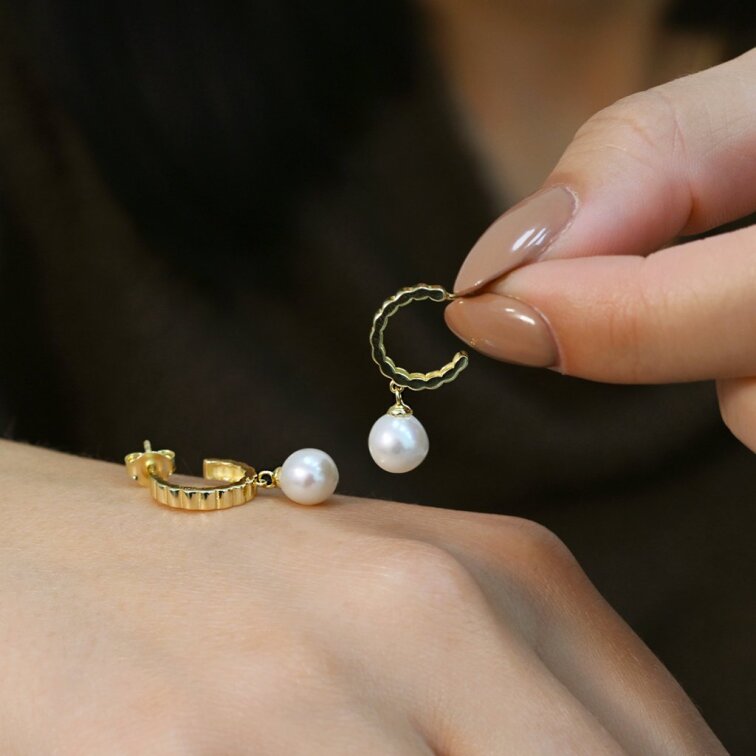 Pozlátené náušnice so zavesenou riečnou perlou 21129.1