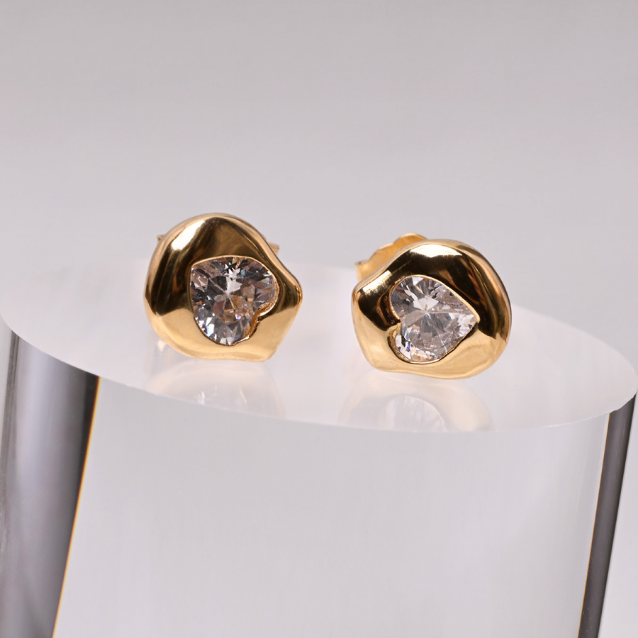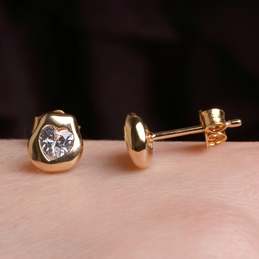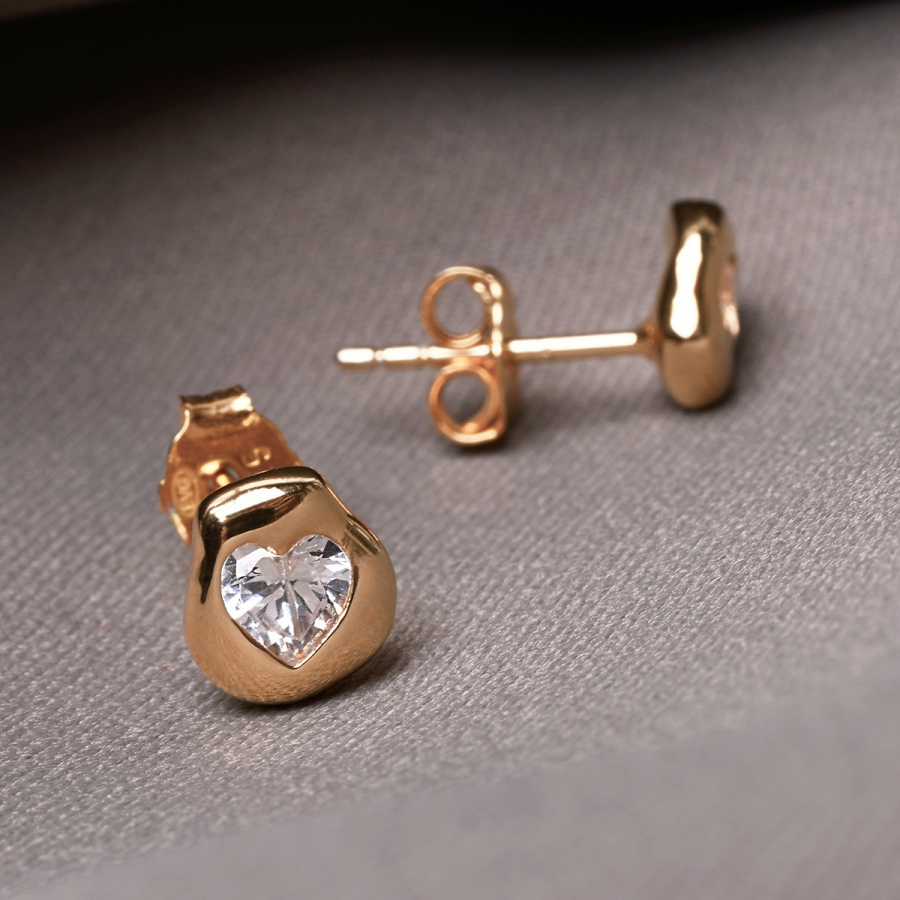 Pozlátené náušnice so zirkónovým srdiečkom 11790.1