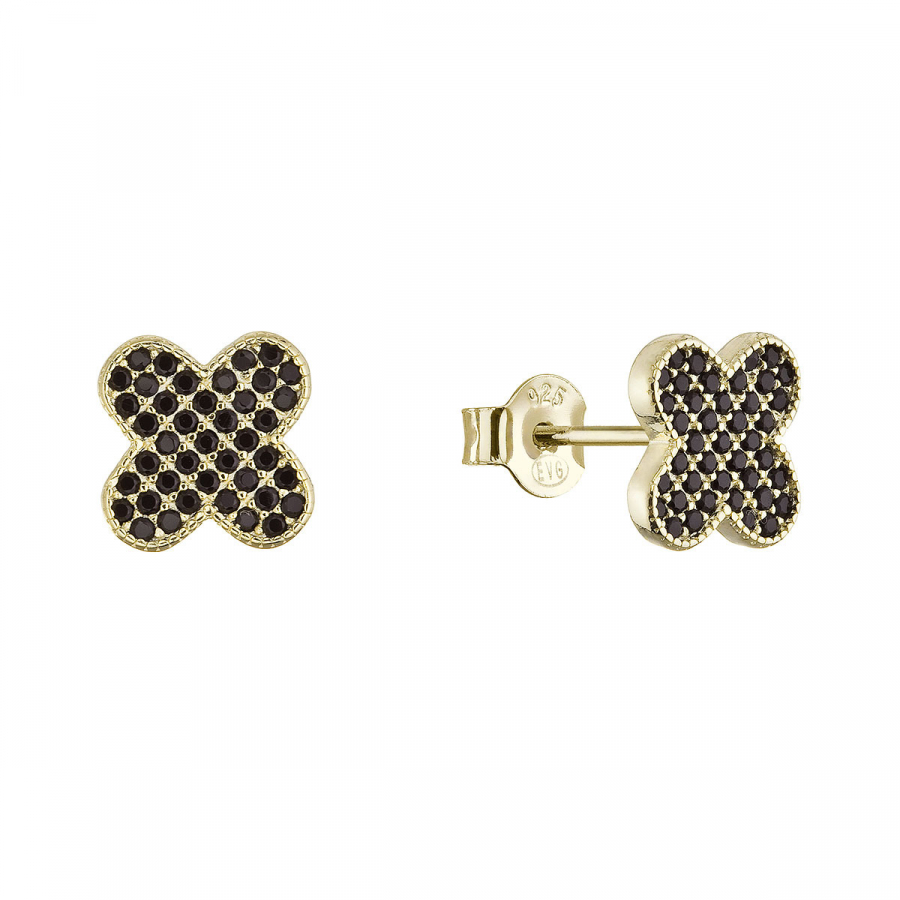 Pozlátené náušnice štvorlístky 11763.3 čierne