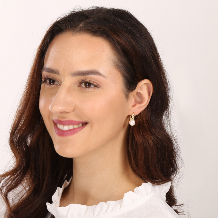 Pozlátené náušnice s bielou riečnou perlou a trblietavými zirkónmi sú okúzľujúcou kombináciou.