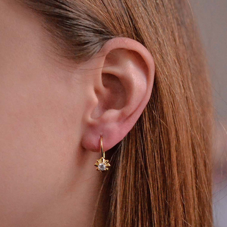 Pozlátené strieborné náušnice v tvare hviezdičky so zirkónom uprostred sú ako odlesk nočnej oblohy na vašich ušiach. Každá hviezdička žiari vlastným jemným svetlom, prinášajúc vám kúsok noci plnej mysterióznej krásy a tajomstva.