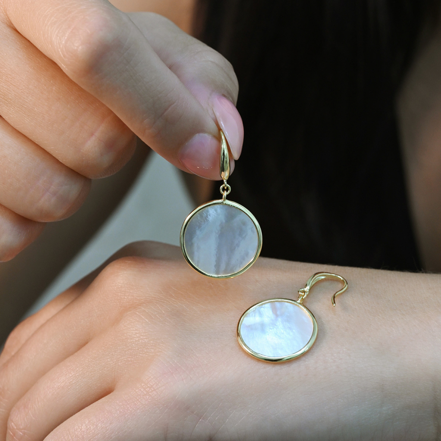 Pozlátené strieborné náušnice kolieska s perleťou 11795.1