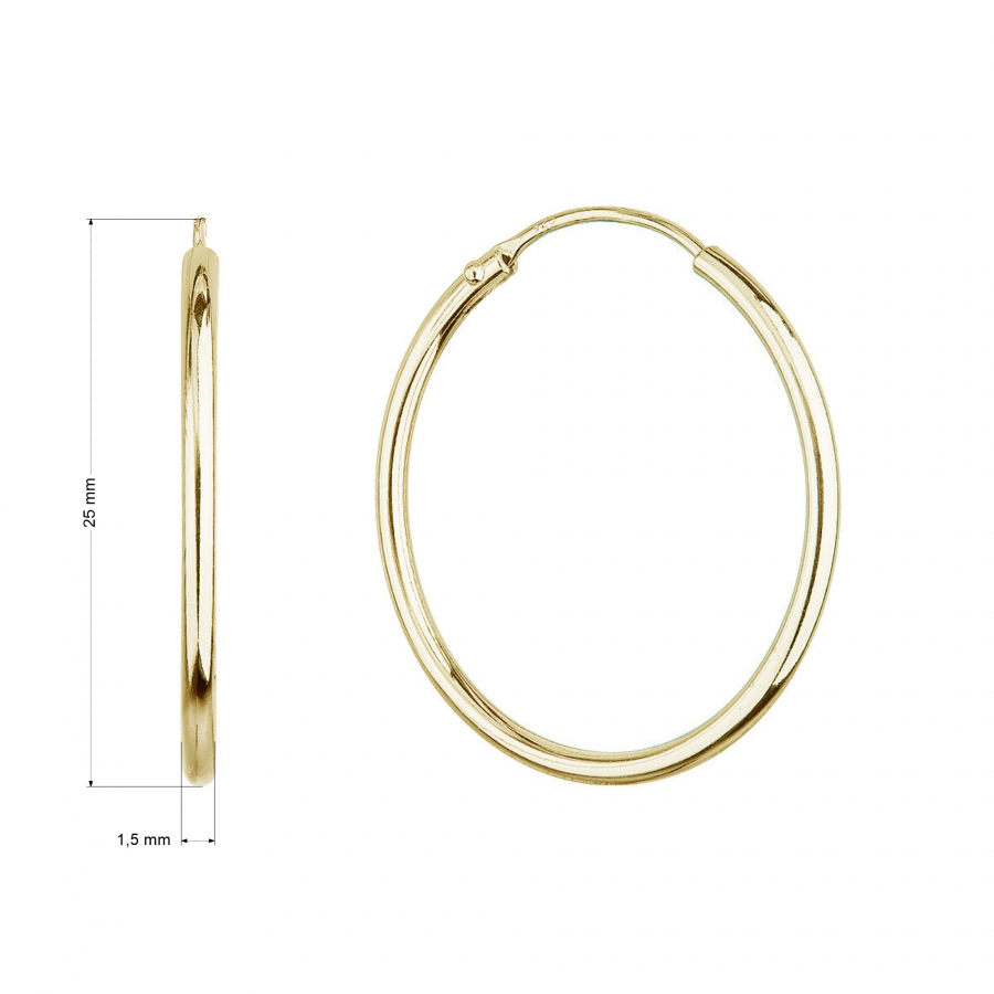 Pozlátené strieborné náušnice typu kruhy 61003 sú vyrobené zo striebra rýdzosti 925/1000. Náušnice majú priemer 25 mm a zapínanie na krúžok. Šperk 61003 neobsahuje nikel , a tak sa nemusíte obávať alergickej reakcie.