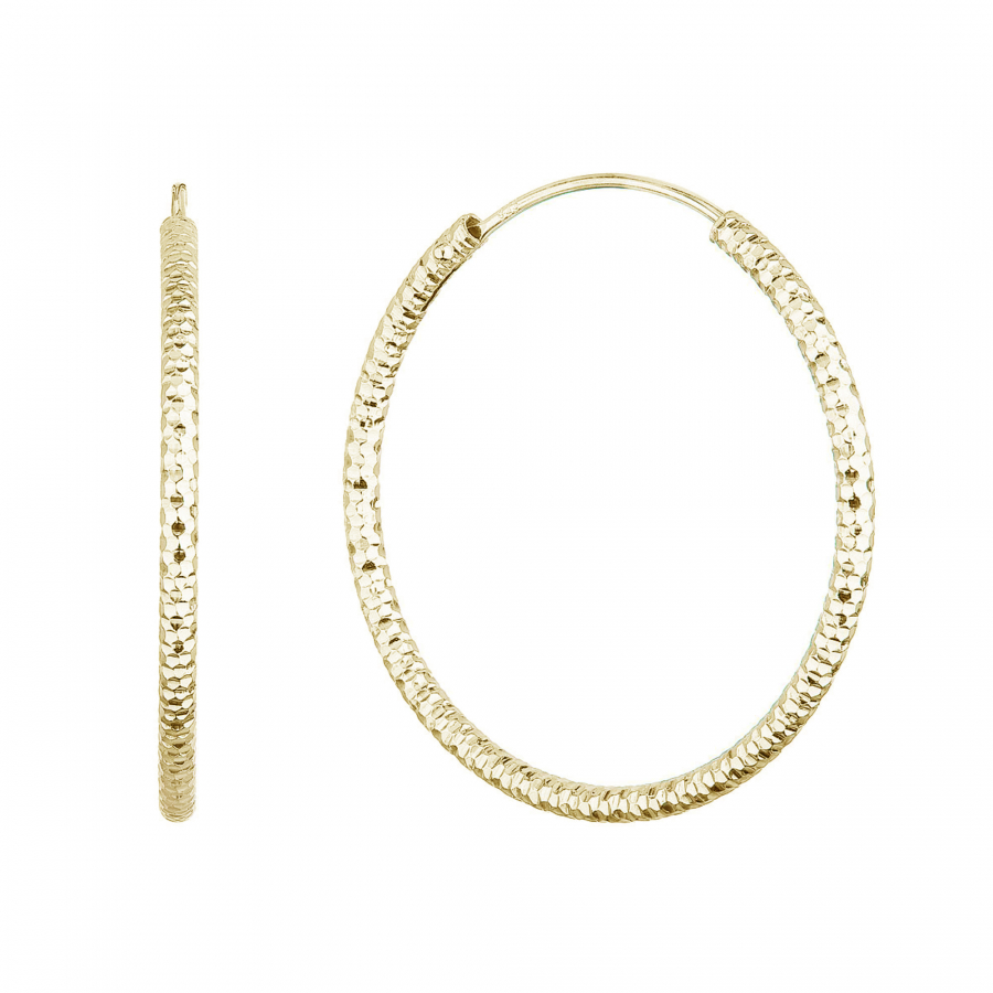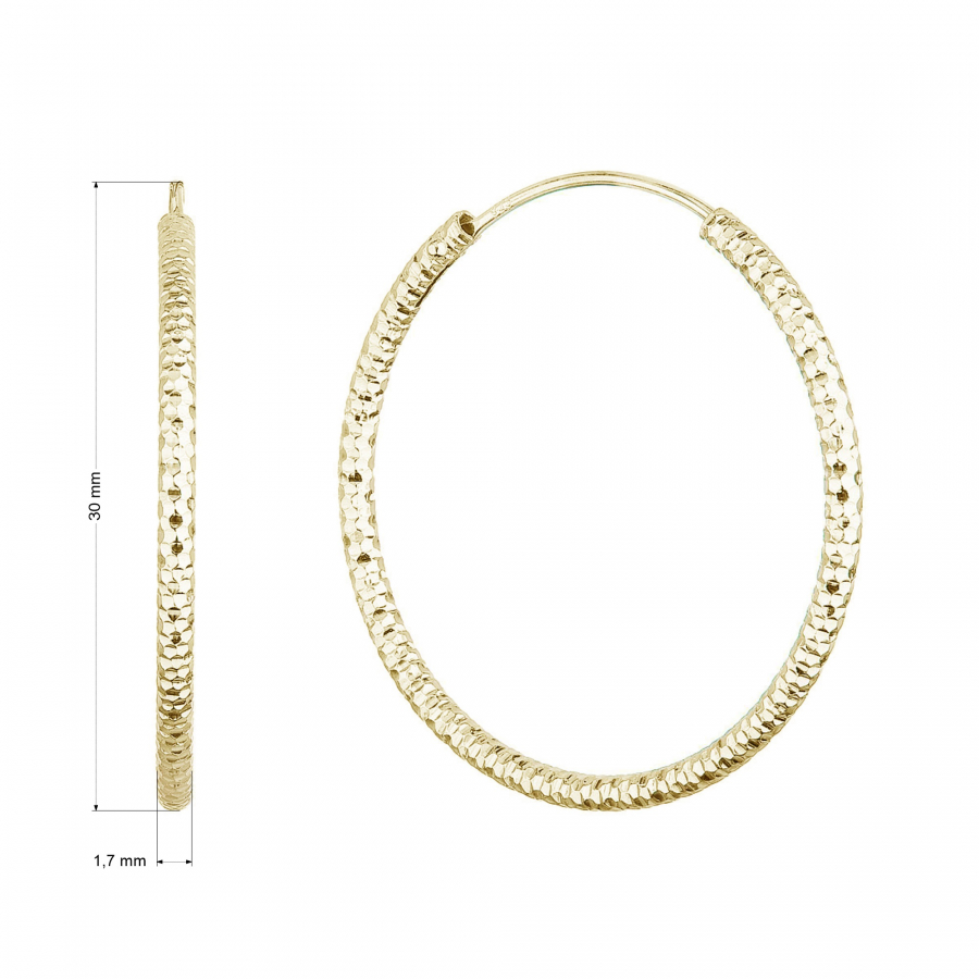 - náušnice v tvare kruhu s ozdobným prelisovaním