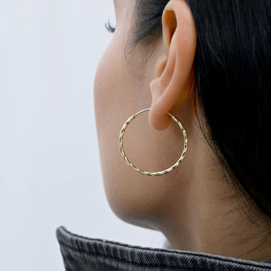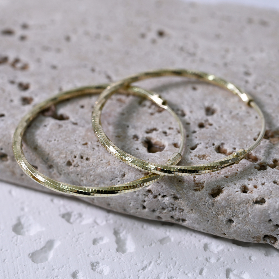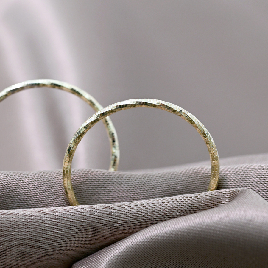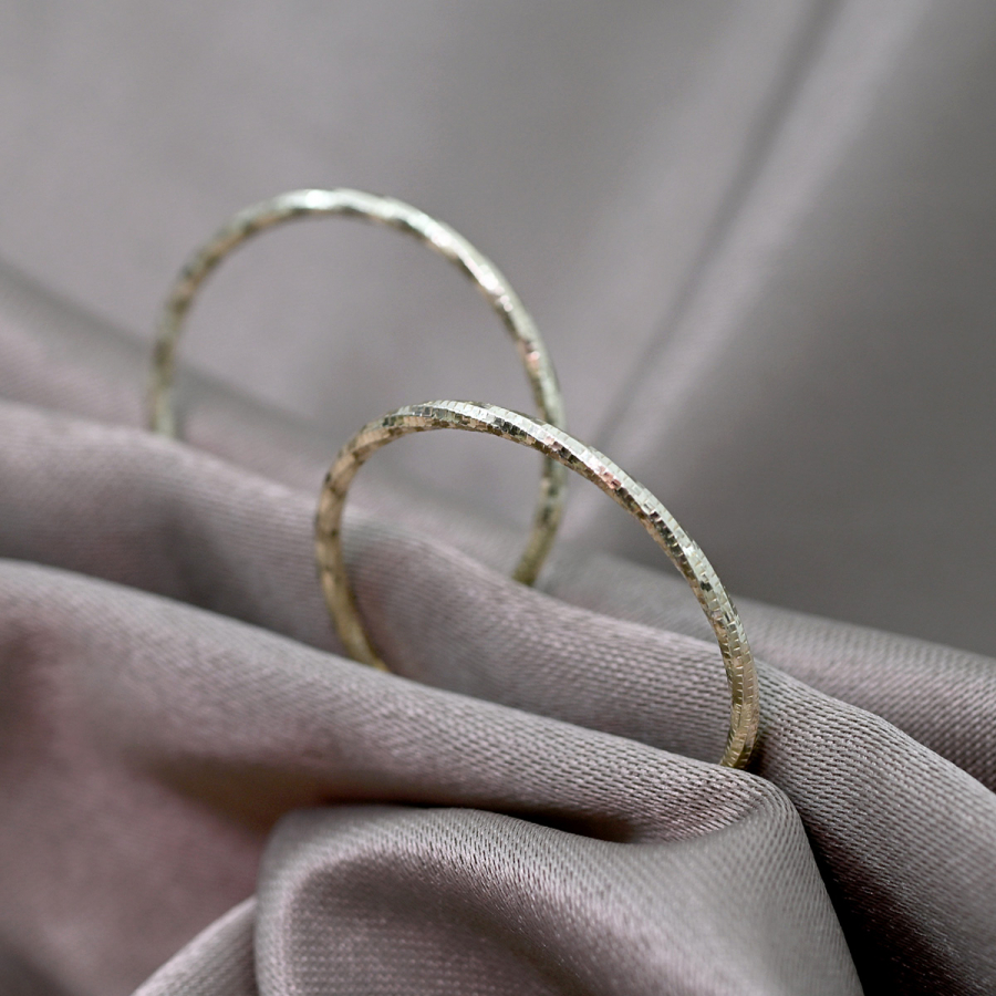 - náušnice v tvare kruhu s ozdobným prelisovaním