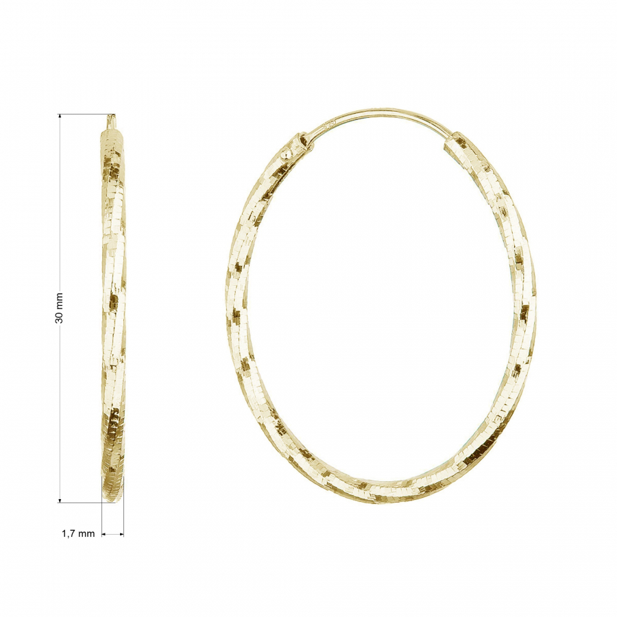 Parametre pozlátených strieborných náušníc kruhy s ozdobným prelisovaním 61007