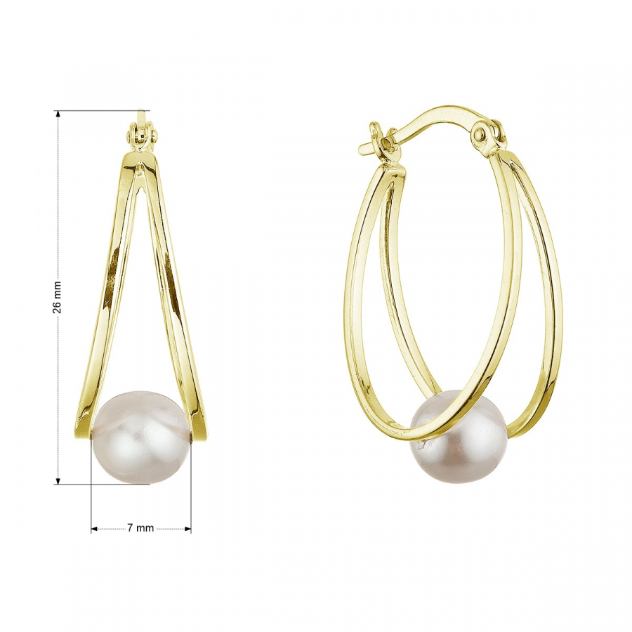 Pozlátené strieborné náušnice kruhy so syntetickou perlou 31325.1