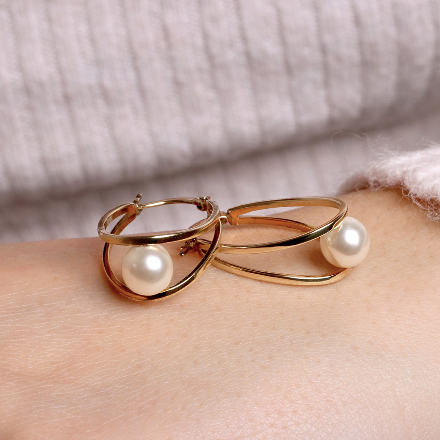 Elegantné kruhové náušnice , ktoré dokonale spájajú klasickú krásu perál s moderným dizajnom. Dva jemne tvarované pozlátené kruhy nežne zvierajú luxusnú bielu syntetickú perlu, ktorá žiari čistotou a nadčasovým pôvabom.