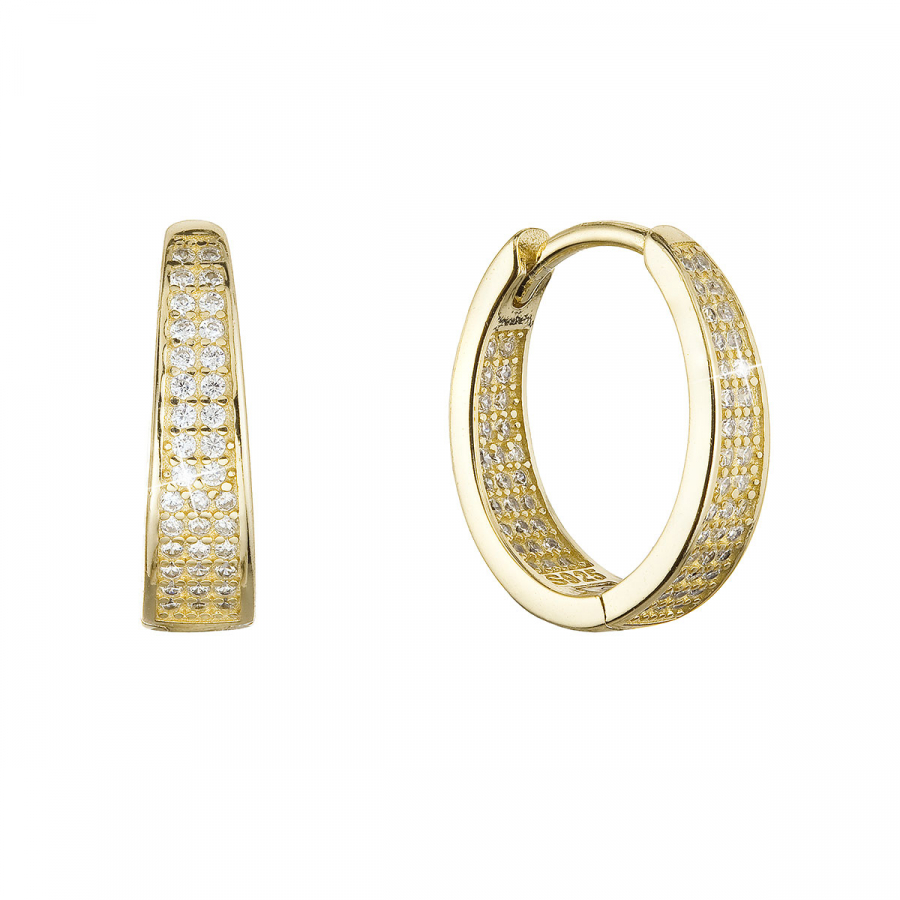 Pozlátené strieborné náušnice kruhy so zirkónikmi v bielej farbe 11444.1