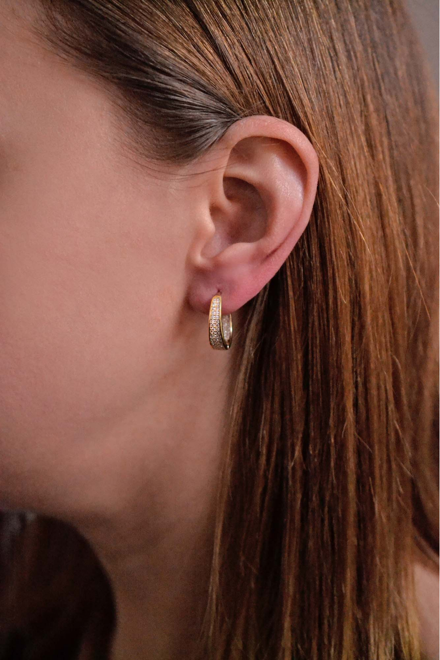 Výrazné kruhové náušnice bohato vysadené trblietavými zirkónmi vyzdvihnú Váš pôvab .