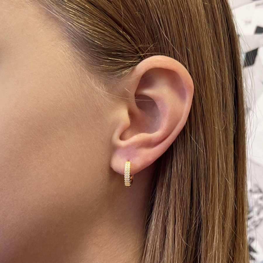 Pozlátené strieborné kruhy o rýdzosti 925/1000 sú vysadené drobnými zirkónmi, ktoré sa v zlatej farbe krásne trblietajú. Navyše neobsahujú žiadny nikel, teda nehrozí alergická reakcia.