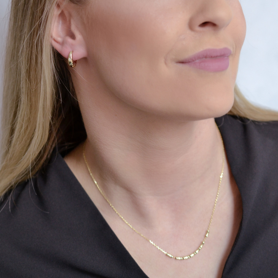 Pozlátené náušnice 11460.1 v tvare polkruhu sú vyrobené z pozláteného striebra o rýdzosti 925/1000 . Náušnice zapnete na ruský patent , ktorý ich ochráni proti nechcenej strate. Keďže do náušníc nie je pridaný nikel , môžu ich bez obáv nosiť aj alergici. Dĺžka náušnice je 14 mm.