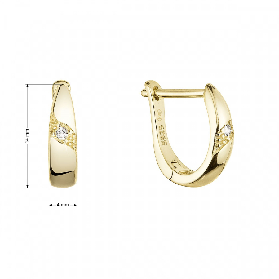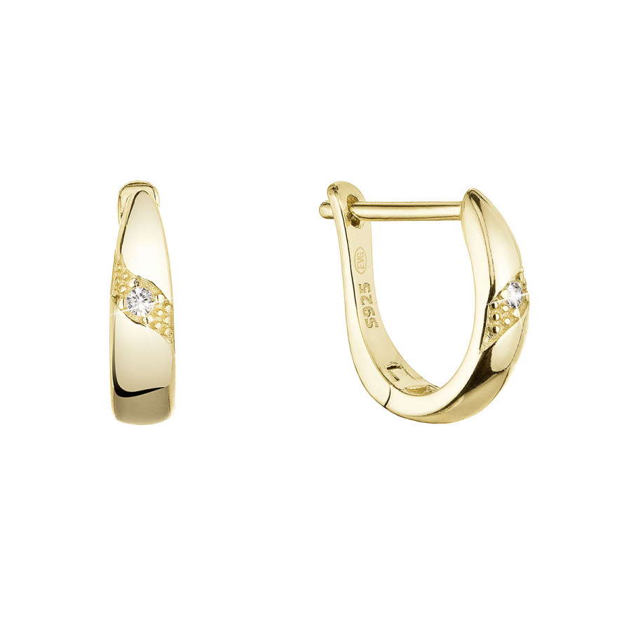 Pozlátené strieborné náušnice kruhy so zirkónom v bielej farbe 11460.1