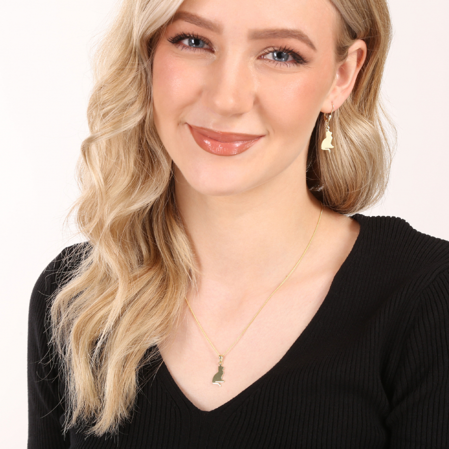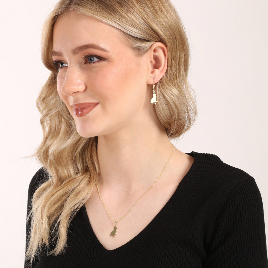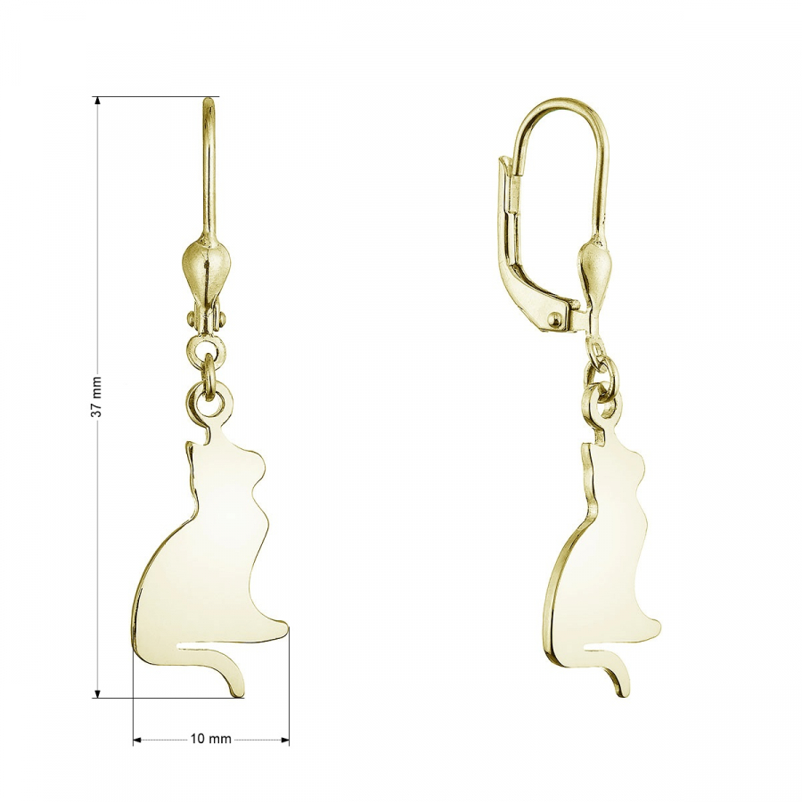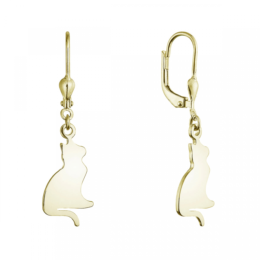 Rozkošný a zároveň vkusný doplnok pre všetky milovníčky mačičiek . Tieto pozlátené visiace náušnice zdobí jemná silueta mačky, ktorá sa voľne hojdá pri každom vašom pohybe a dodáva šperku hravý nádych.
