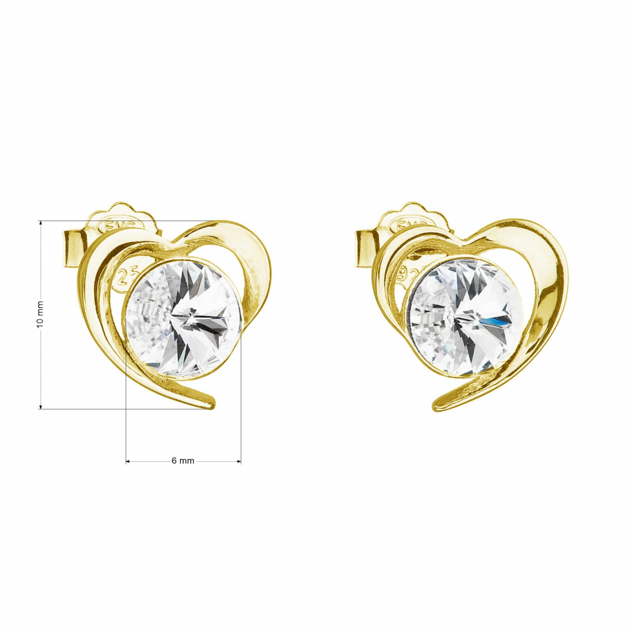 Pozlátené strieborné náušnice pecka s kryštálmi Swarovski biele srdce 31259.1