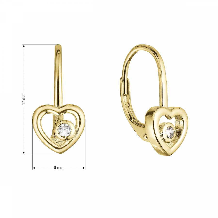 Pozlátené strieborné náušnice srdca so zirkónom 11514.1 crystal