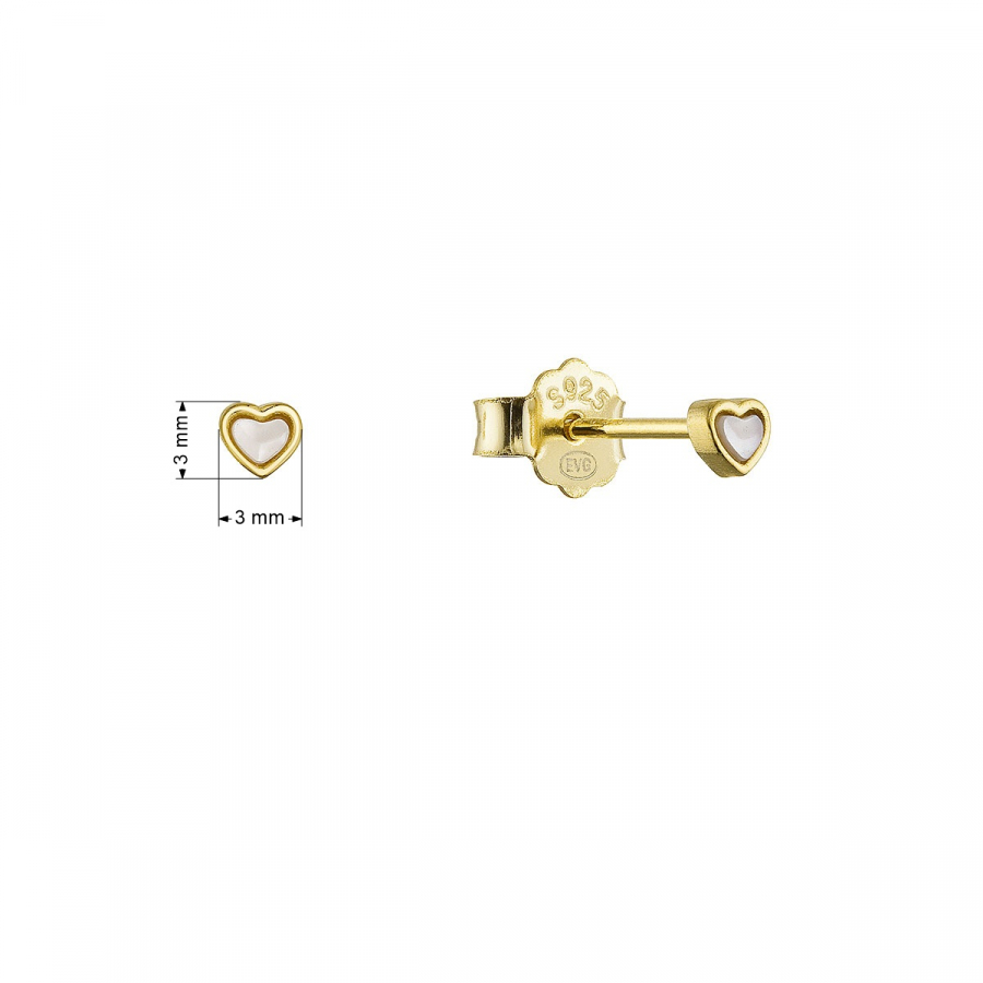 Pozlátené strieborné náušnice srdiečka s perleťou 11706.1