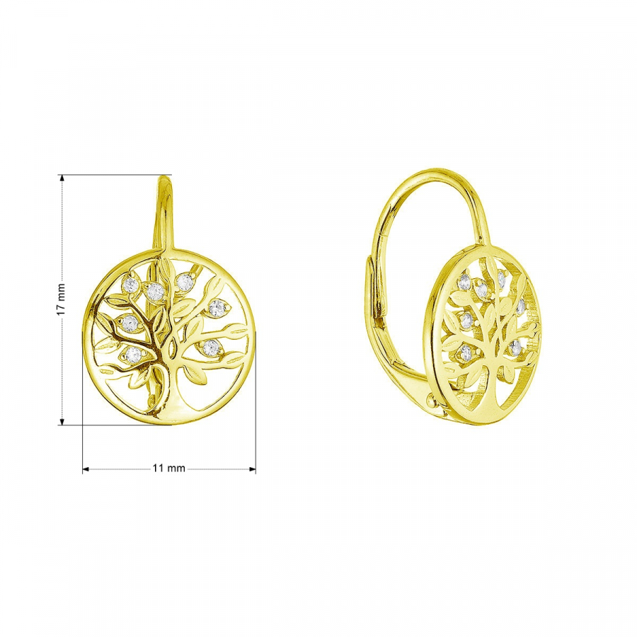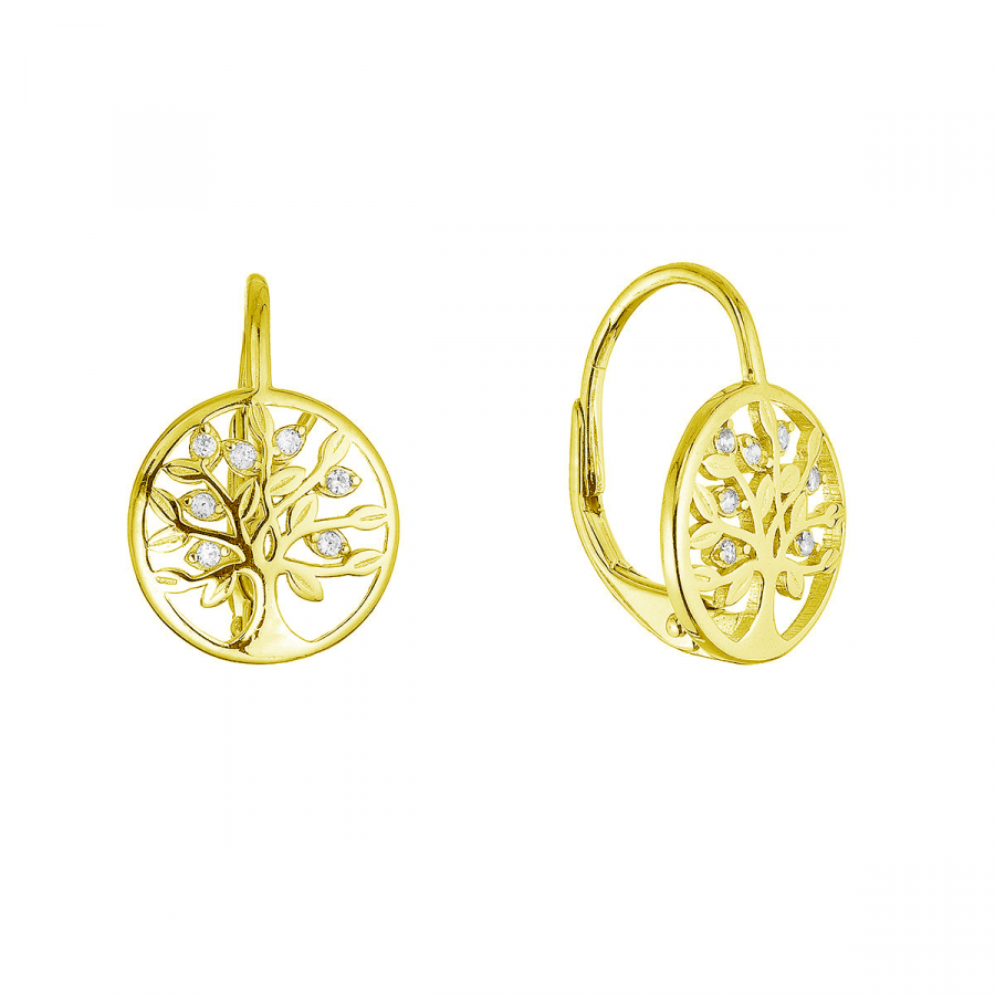 Pozlátené strieborné náušnice strom života so zirkónmi 11712.1