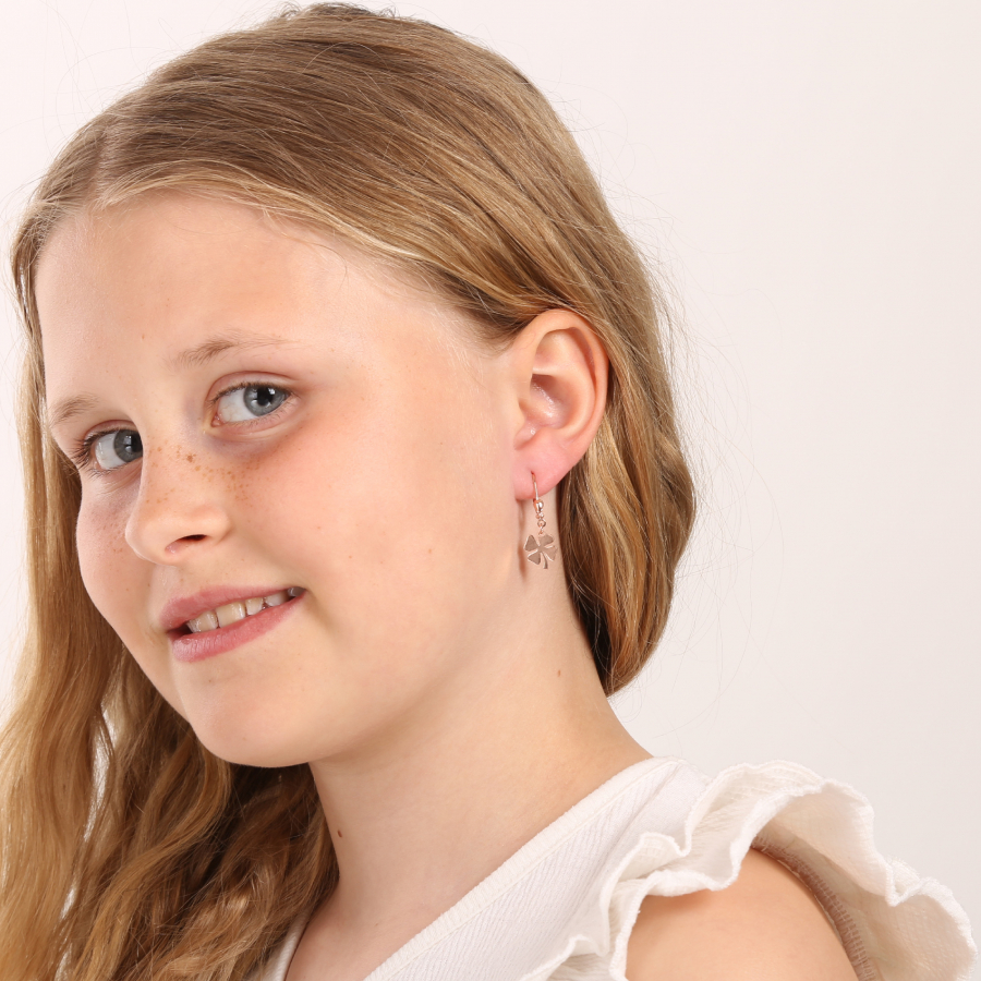 Žiarivé visiace náušnice v tvare štvorlístka prinášajú do vášho štýlu nádych šťastia a elegancie.