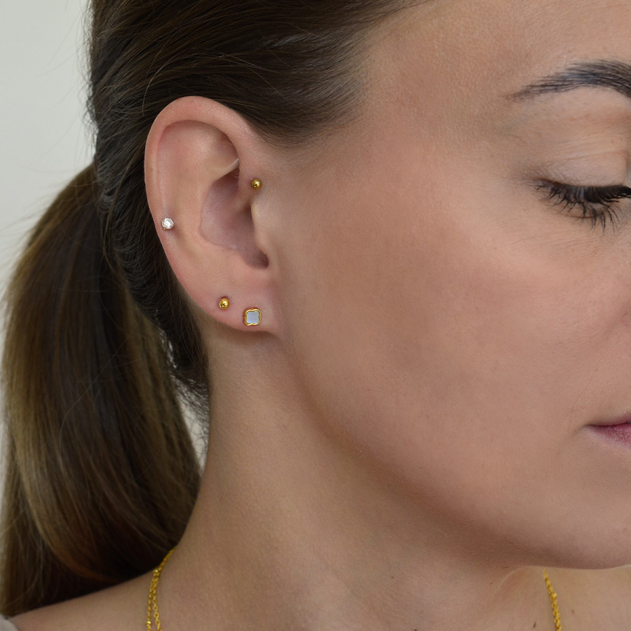 Očarujúce puzetové náušnice v tvare štvorlístkov sú dokonalým doplnkom pre ženy, ktoré milujú jemné a romantické šperky. Sú vyrobené z pozláteného striebra a vyplnené perleťou, ktorá dodáva šperkom nádherný dúhový lesk a symbolizuje šťastie.