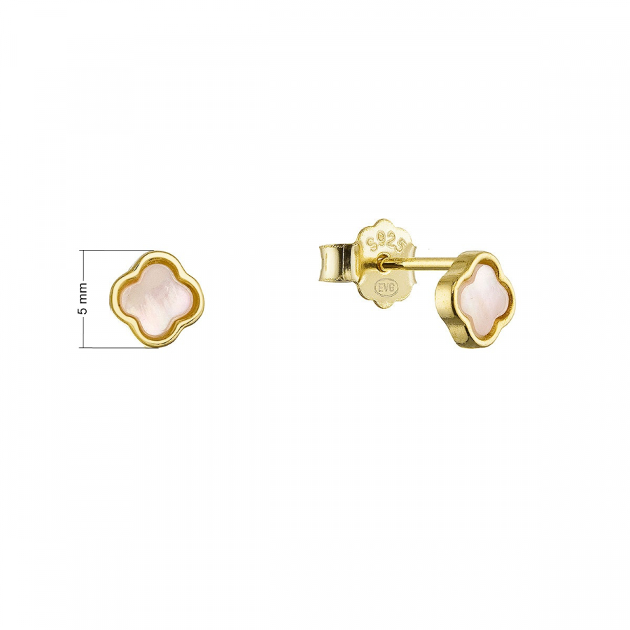 Pozlátené strieborné náušnice štvorlístky s ružovou perleťou 11709.3