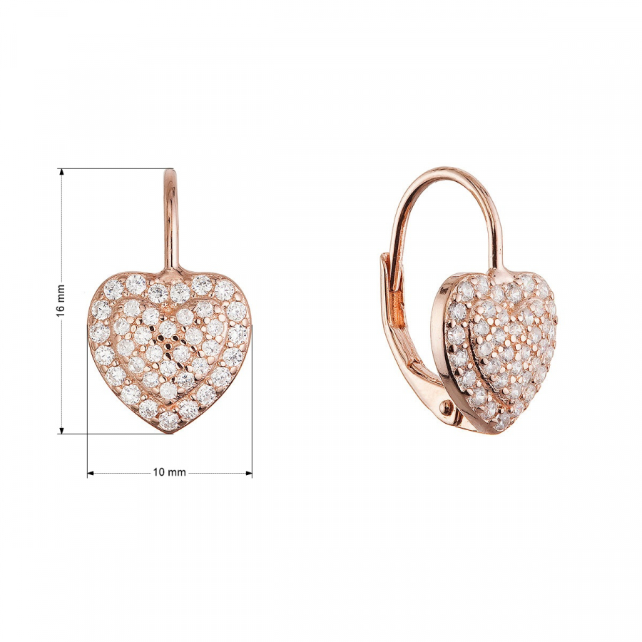 Náušnice v tvare srdiečok - pre romantické duše s vycibreným vkusom. Náušnice 11714.1 vyrobené zo striebra rýdzosti 925/1000 nie sú len krásne, trblietavé. Pozlátené ružovo. Spoľahlivé zapínanie na klapku zaistí, že vám zostanú verné pri všetkých vašich dobrodružstvách. Každé srdiečko sme vysadili trblietavými zirkónmi, ktoré sa rozžiaria pri najmenšom pohybe - ako by zachytávali všetky šťastné momenty vášho dňa. Náušnice neobsahujú nikel , sú teda vhodné aj pre alergikov.