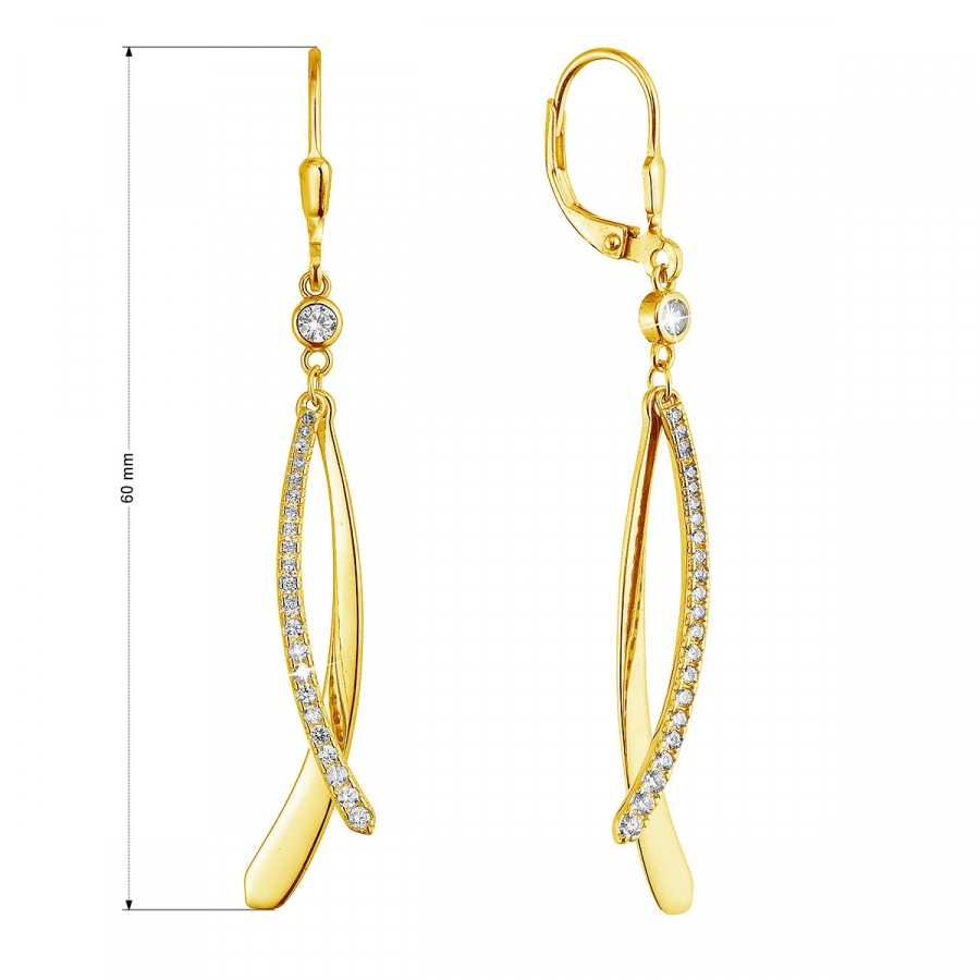 Pozlátené strieborné náušnice visiace dlhé 11540.1