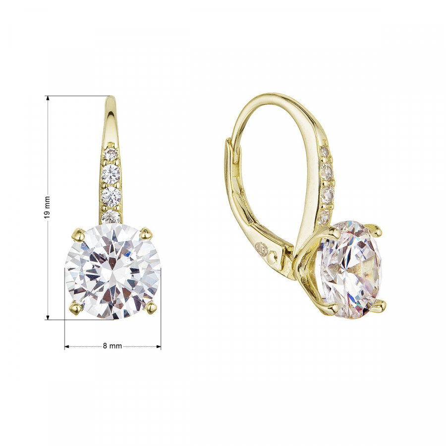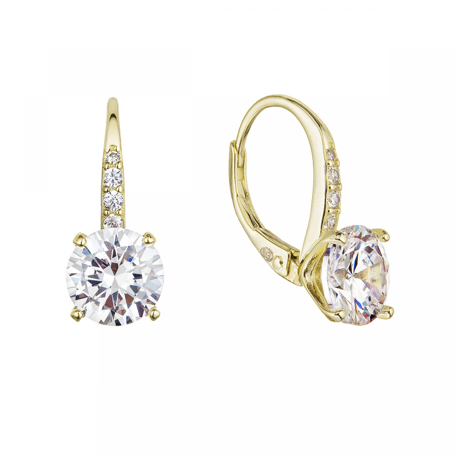 Pozlátené strieborné náušnice v ktorých veľmi elegentne vynikajú biele zirkóny.