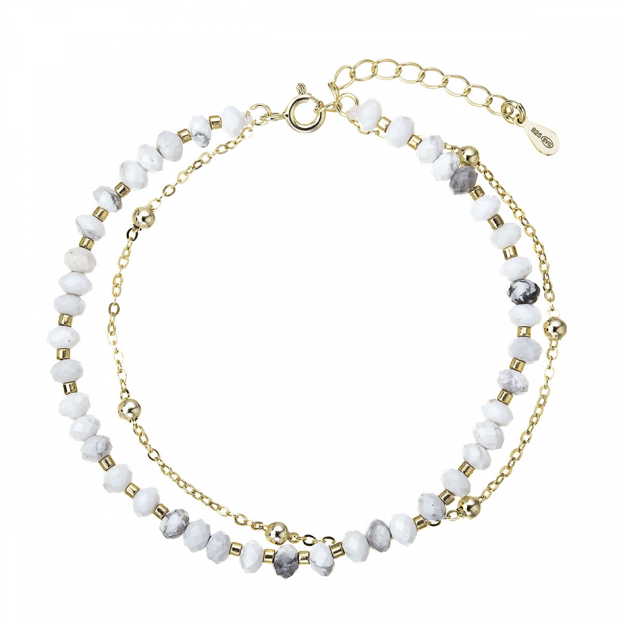 Pozlátený dvojitý náramok s bielymi howlitmi 13115.1