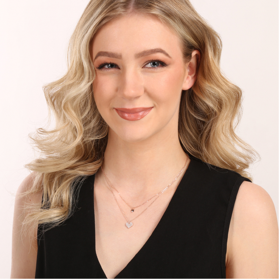 Dvojradový náhrdelník 12153.3 v jemnom odtieni ružového zlata (rose gold) je nežným a zároveň moderným doplnkom, ktorý zaujme svojou symbolikou aj elegantným dizajnom. Dve retiazky spojené do jedného celku vytvárajú trendy vrstvený vzhľad – kratšia retiazka nesie hladké srdiečko, zatiaľ čo dlhšie zdobia väčšie srdce vysadené drobnými trblietavými zirkónmi. Tento šperk pôsobí romanticky, elegantne a vďaka farbe ružového zlata aj veľmi žensky.