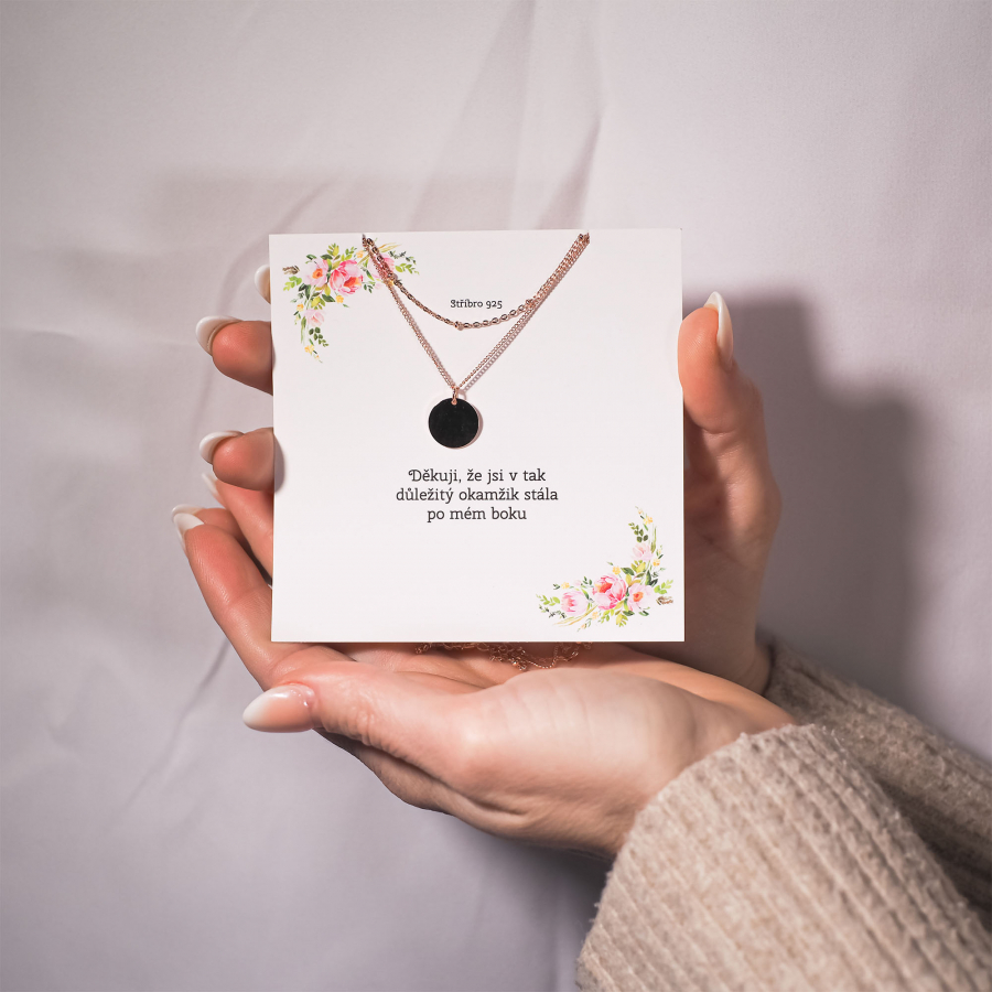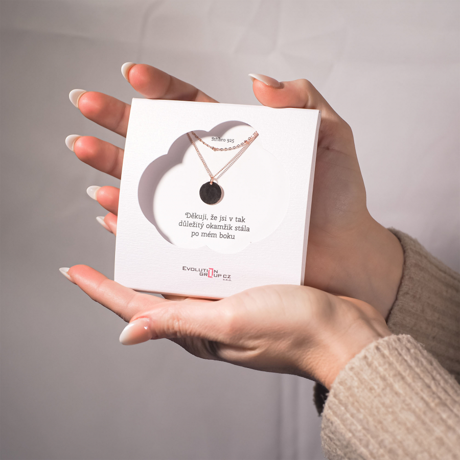 Náhrdelník dvojradový s príveskom vám ZADARMO zabalíme do darčekovej krabičky a taštičky. Alebo ho môžeme zabaliť do špeciálneho darčekového balenia s prianím, ktoré si vyberiete z našej ponuky za príplatok.