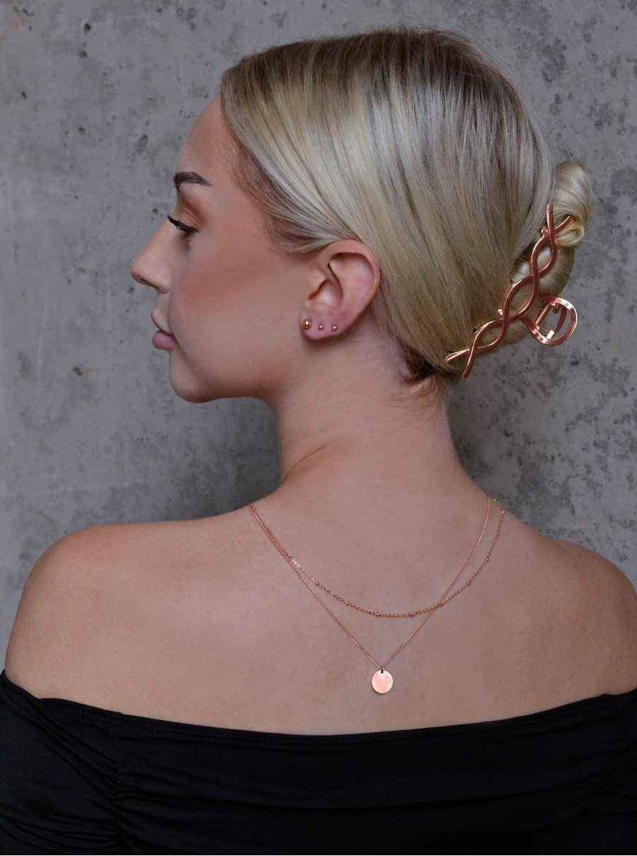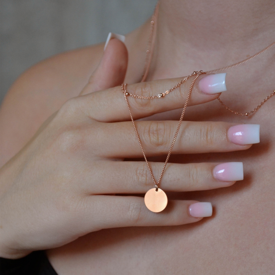 Nový moderný a elegantný štýl sú dvojité náhrdelníky a náramky. Choďte s módou s novým Rose Gold náhrdelníkom 62002, ktorý tvorí dve retiazky , jeden s jemnými guličkami po obvode a druhý s modernou leštenou striebornou placičkou.