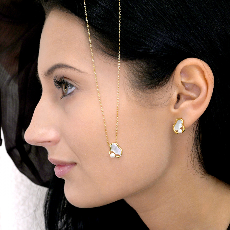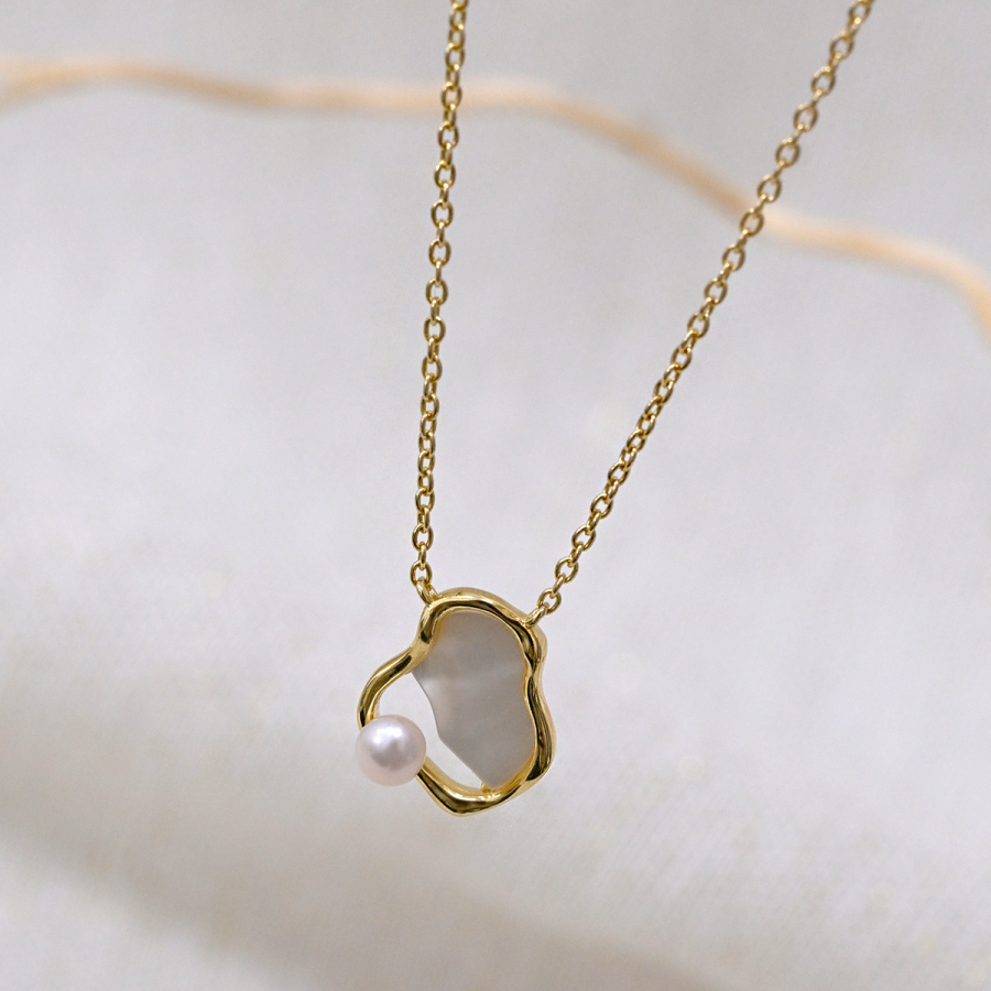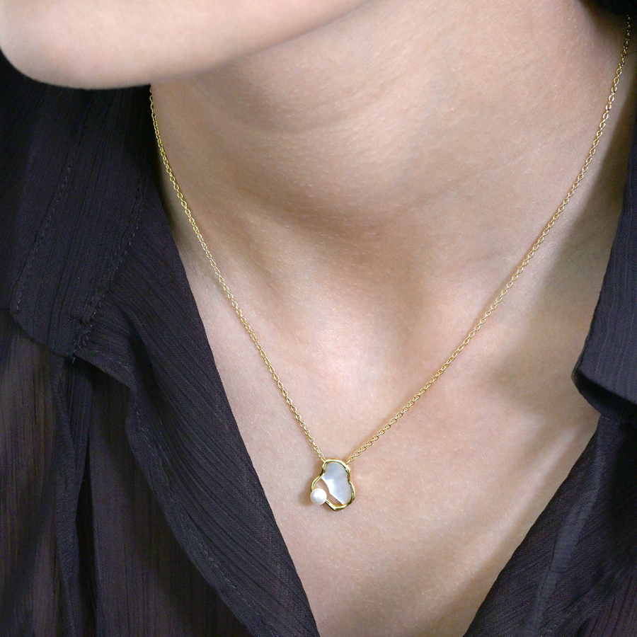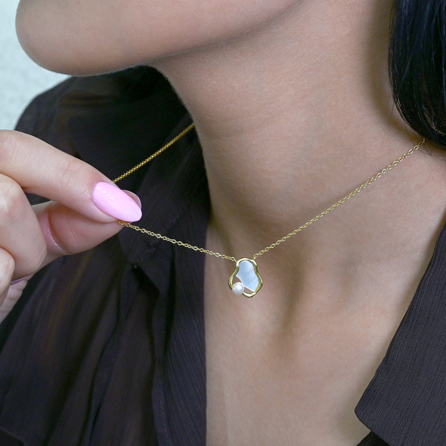 Pozlátený náhrdelník nepravidelného tvaru s riečnou perlou 22056.1