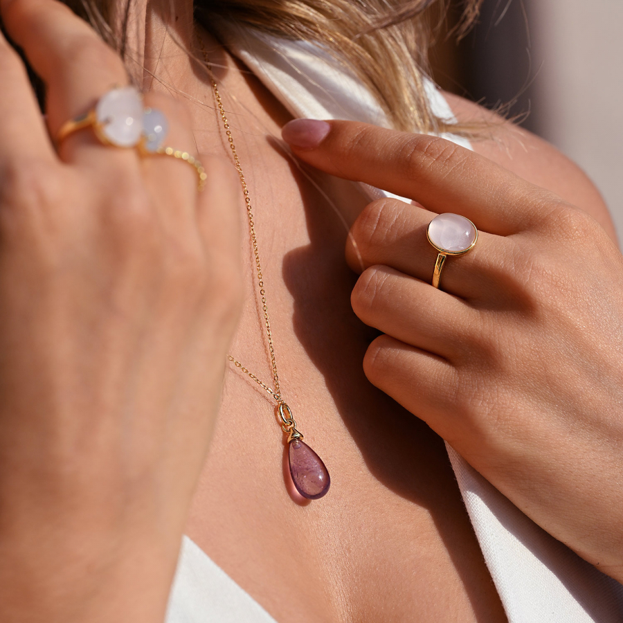 Ametyst odpradávna považovaný za kameň múdrosti a duchovného poznania, ponúka svojmu nositeľovi viac než len krásu. Pomáha upokojovať myseľ, podporuje meditáciu a vnútorný pokoj. Jeho sýto fialová farba symbolizuje duchovný rozvoj, intuíciu a vnútornú múdrosť. Ametyst je sprievodcom tých, ktorí hľadajú vnútornú harmóniu, ktorí chcú prehĺbiť svoje duchovné poznanie a nájsť vnútornú rovnováhu. Je to kameň, ktorý pomáha uvoľňovať stres, čistiť myseľ a otvárať cestu k sebapoznaniu a vnútornému mieru.