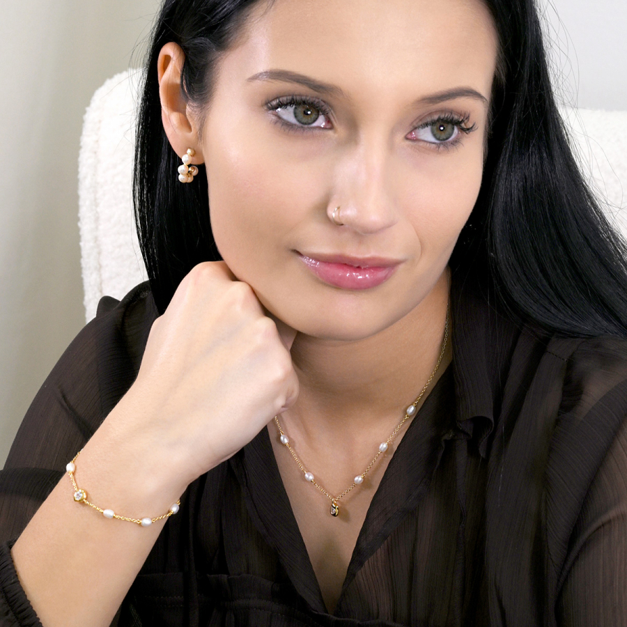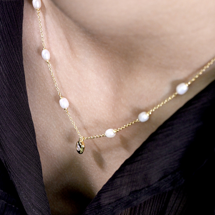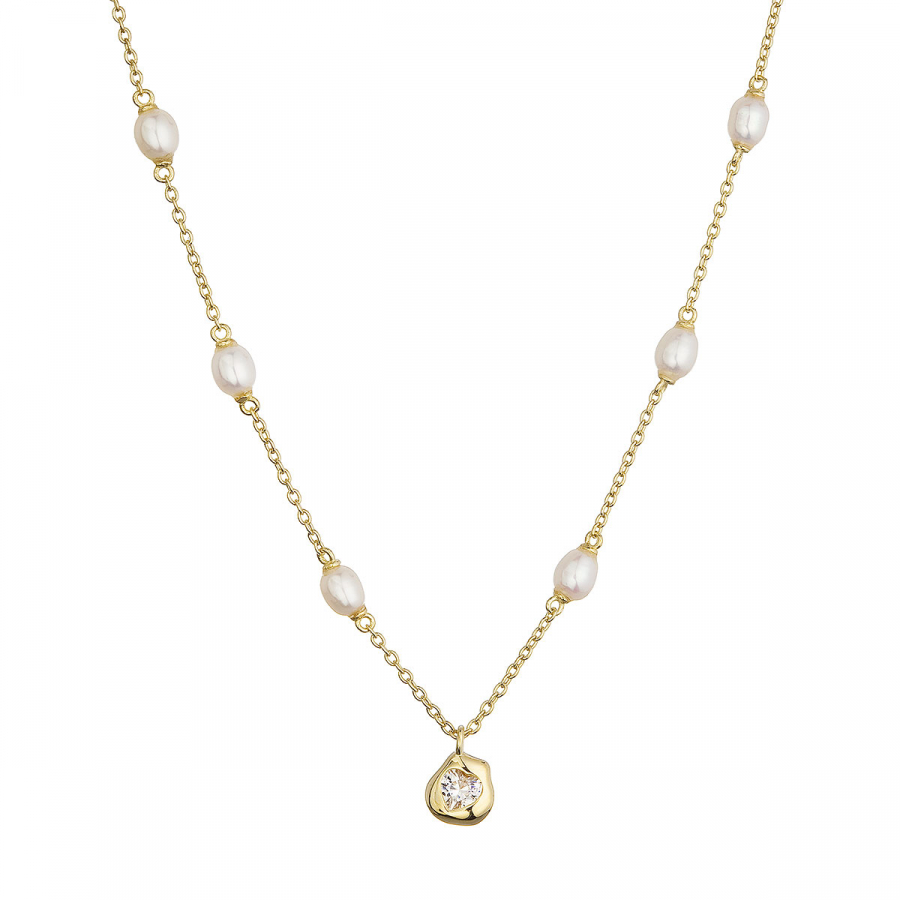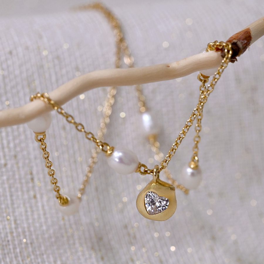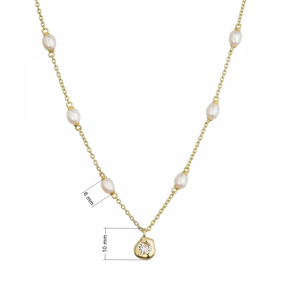 Pozlátený náhrdelník s riečnymi perlami a srdiečkom 22058.1