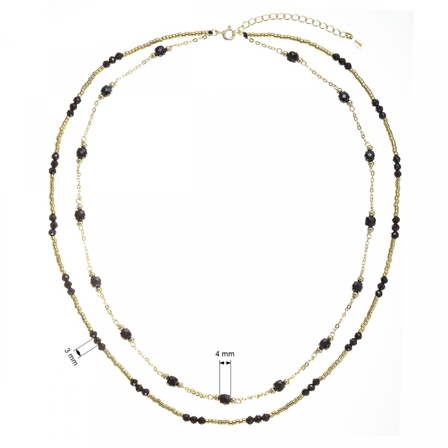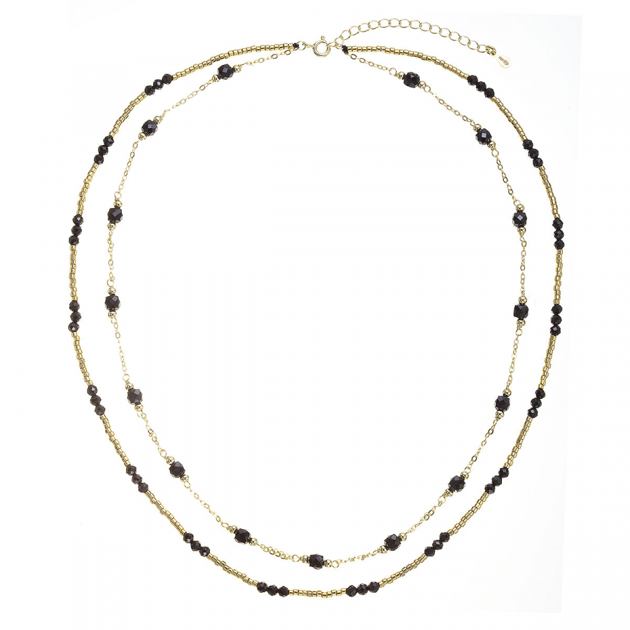 Očarujúce jemný dvojradový náhrdelník s drobnými prírodnými kamienkami, čiernymi spinelmi pôsobia veľmi elegantne.