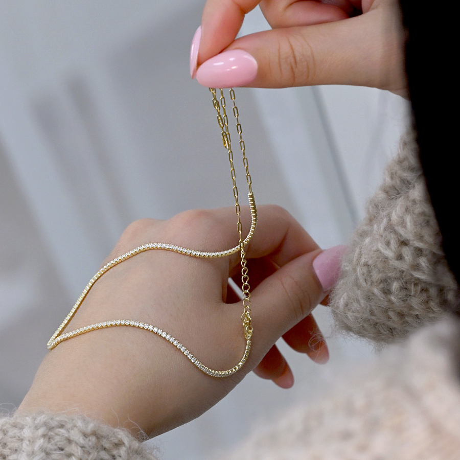 Pozlátený náhrdelník so zirkónmi 12173.1