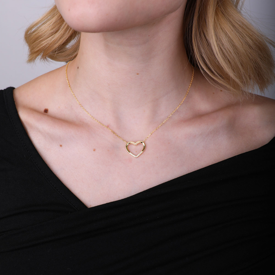 Pozlátený náhrdelník srdca s bielymi zirkónmi 12010.1