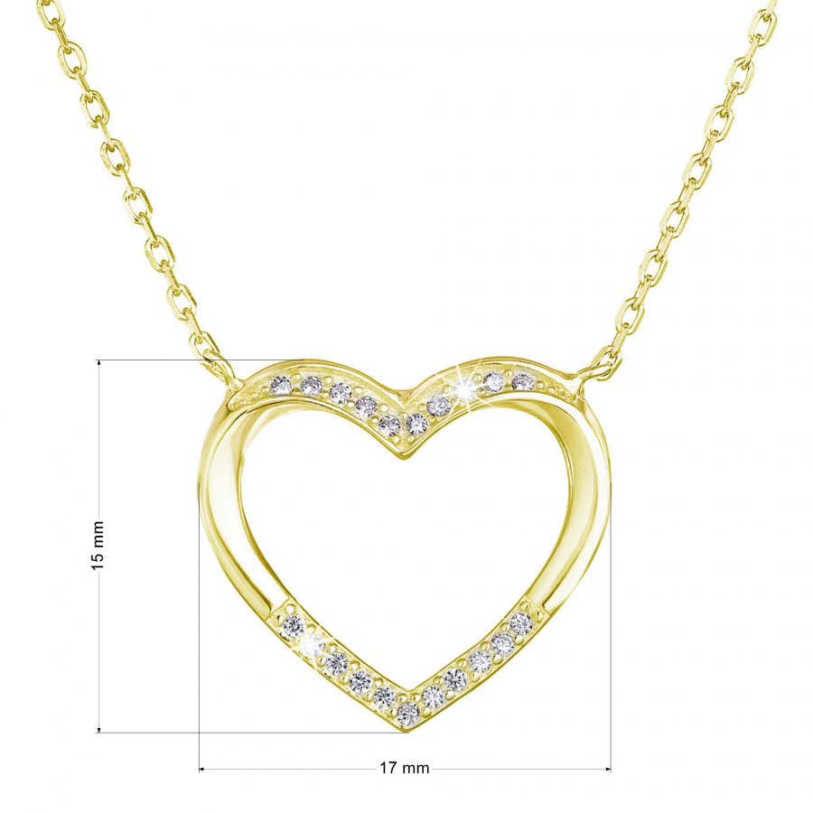 Parametre pozláteného náhrdelníka srdca s bielymi zirkónmi 12010.1