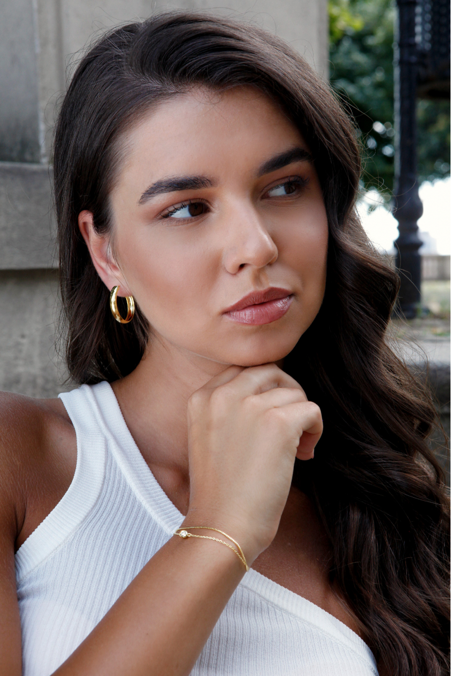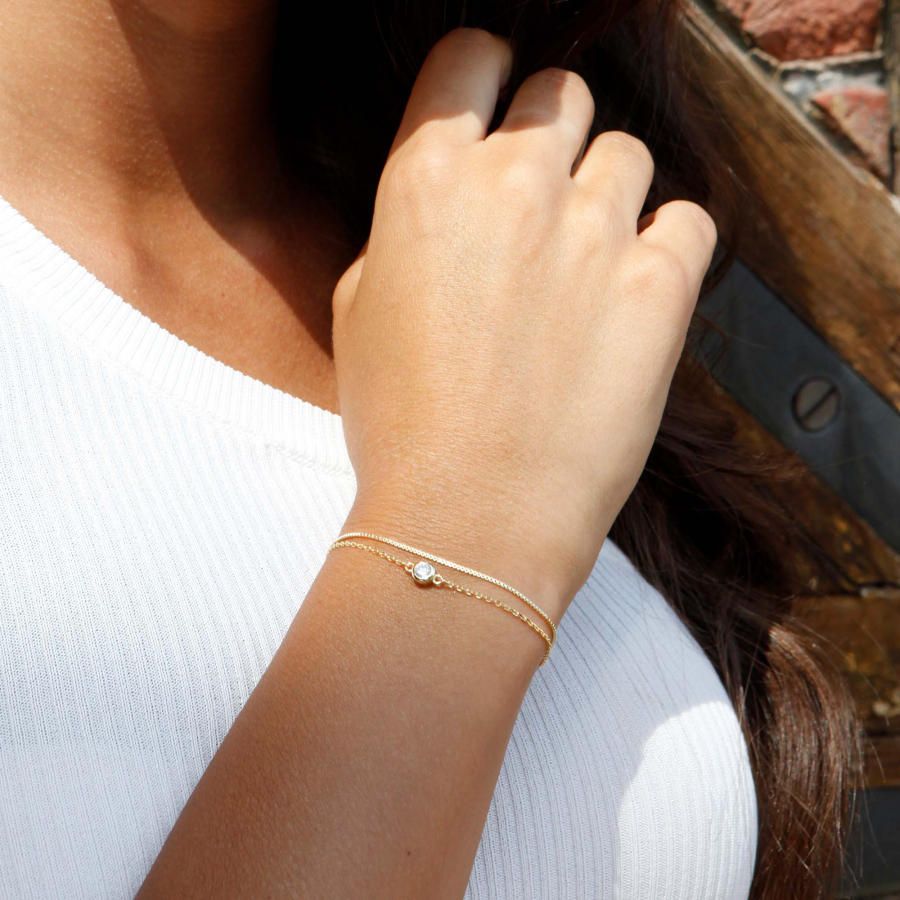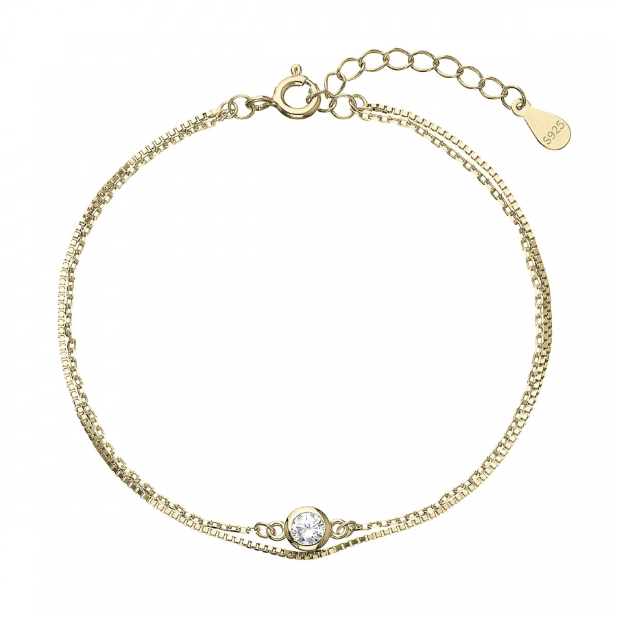 Pozlátený náramok dvojitá retiazka so zirkónom 63006
