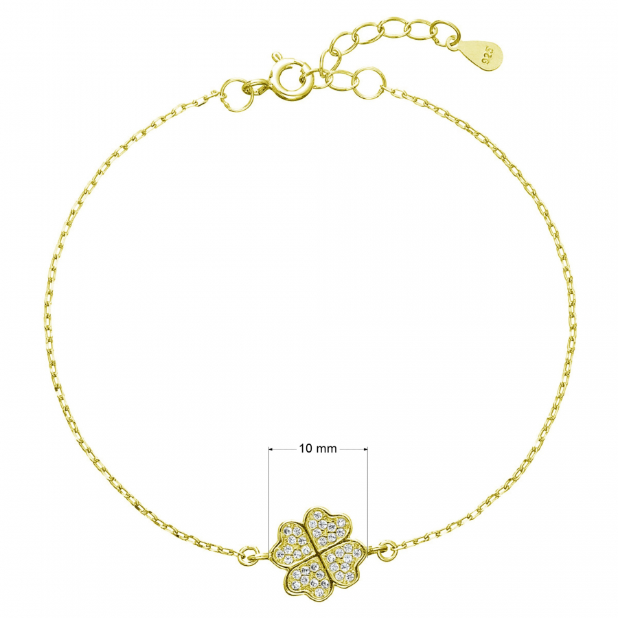 Pozlátený náramok s bielymi zirkónmi štvorlístok 13008.1