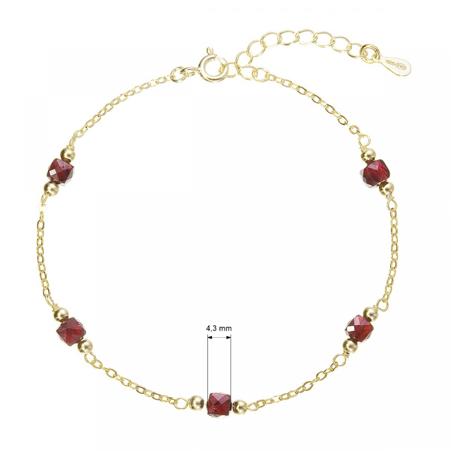 Jemný pozlátený náramok s drobnými fazetovanými granátmi v nádhernej sýto červenej farbe.