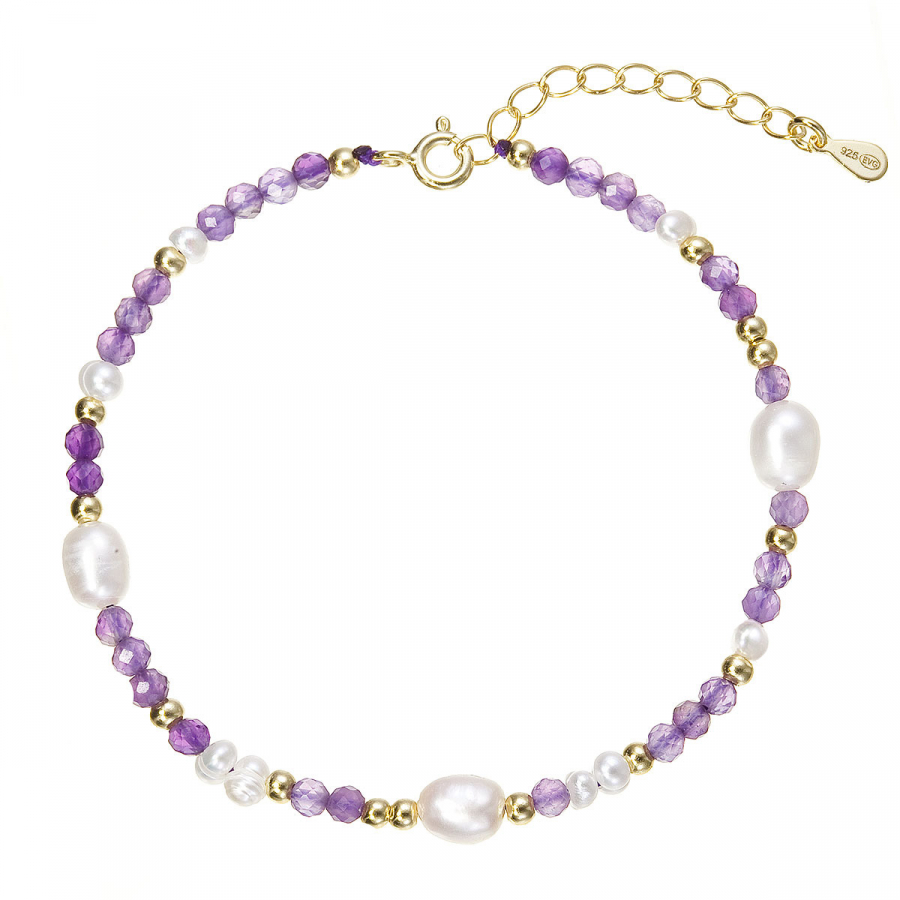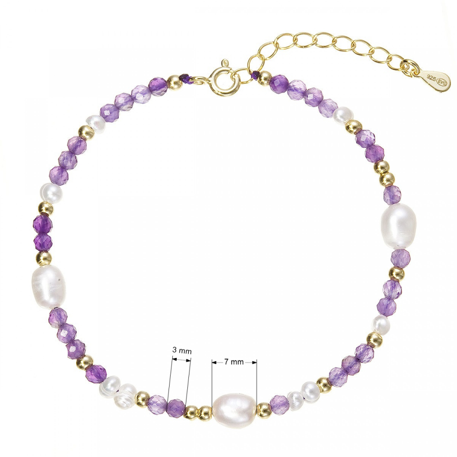 Pozlátený náramok s perlami a ametystmi 13113.3
