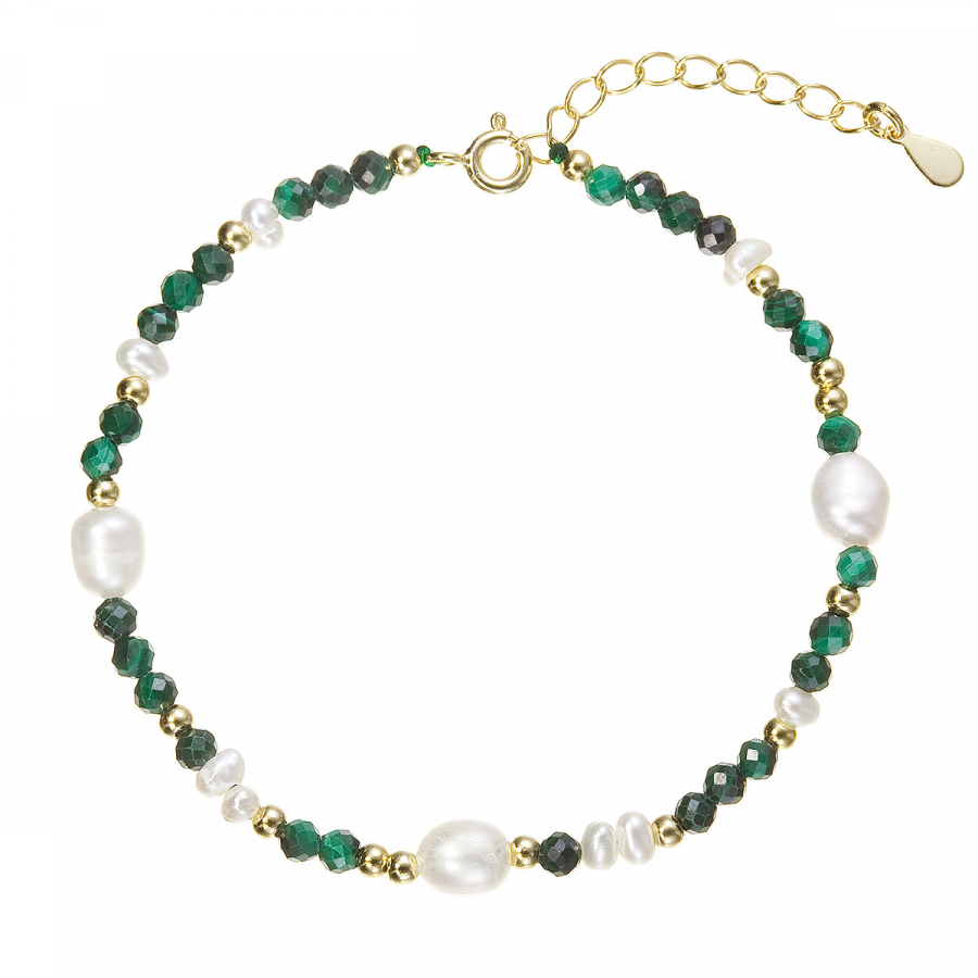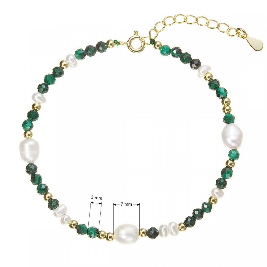 Pozlátený náramok s perlami a malachitmi 13113.3