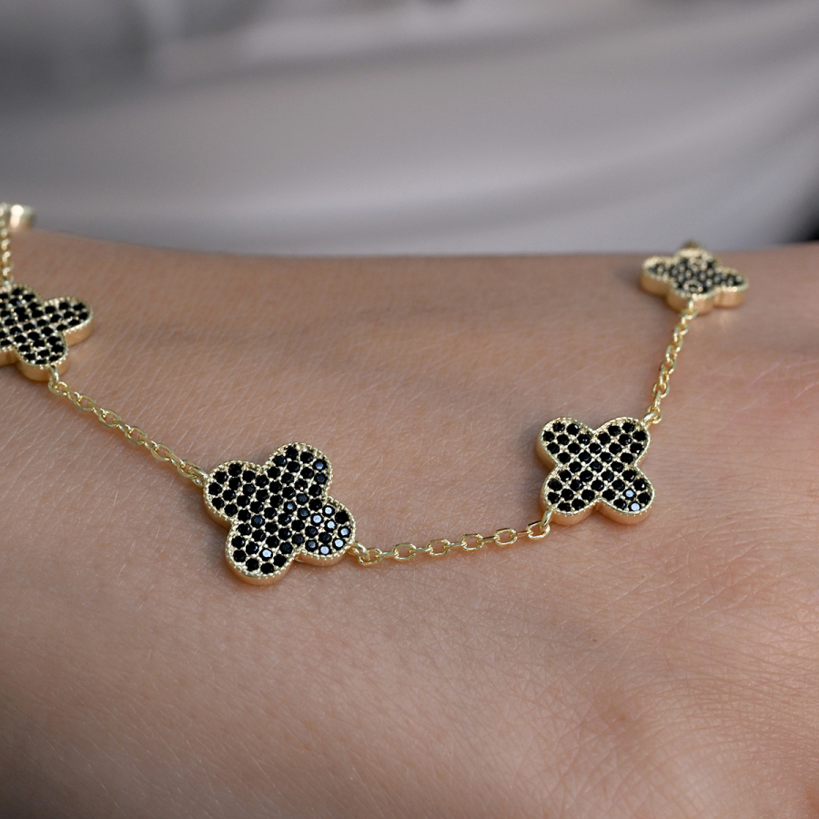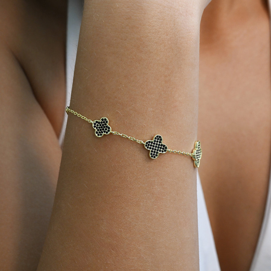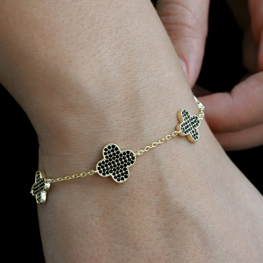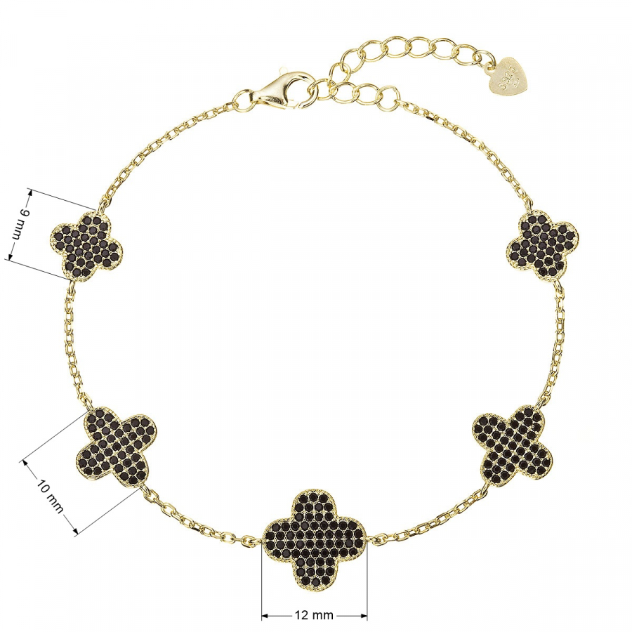 Pozlátený náramok so štvorlístkami 13108.3 čierny