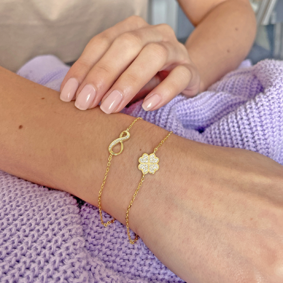 Pozlátený náramok so zirkónmi nekonečno 13009.1